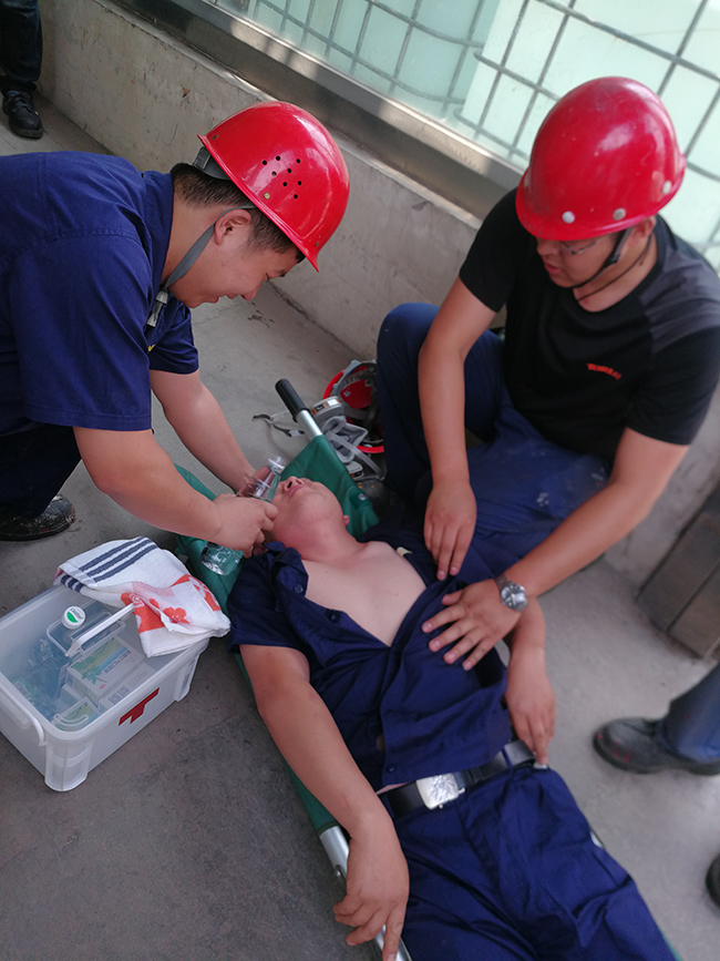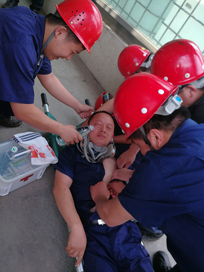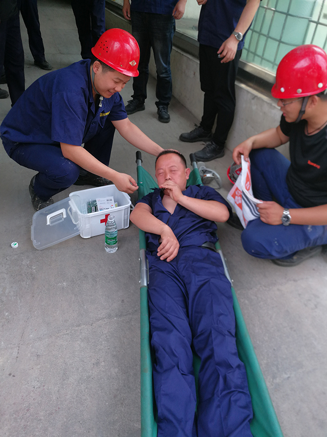 為了檢驗我公司職業(yè)危害救援組織反應速度、救援能力以及協(xié)同配合、演練救援技能,氨綸公司于2019年6月12日10:00組織一次職業(yè)病應急預案演練,演練隊伍針對一名員工發(fā)生高溫中暑危害開展應急救援演練。
