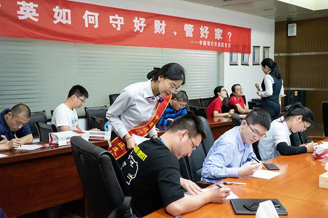 5月24日上午,中行開發(fā)區(qū)支行營(yíng)業(yè)部主任張薇一行8人來到氨綸,給氨綸人帶來一場(chǎng)主題為“氨綸精英如何守好財(cái),管好家”金融知識(shí)分享會(huì),分享會(huì)涉及中行金融服務(wù)內(nèi)容、個(gè)人征信提醒、理財(cái)產(chǎn)品選擇、生活日常繳費(fèi),服務(wù)滿意度調(diào)查等方面,與會(huì)期間穿插團(tuán)隊(duì)合作游戲、有獎(jiǎng)問答環(huán)節(jié),現(xiàn)場(chǎng)開設(shè)金融咨詢微信群,以便大家繼續(xù)學(xué)習(xí)和疑問解答,有效調(diào)動(dòng)了員工學(xué)習(xí)金融知識(shí)的積極性,四十五分鐘的分享會(huì)在歡快的氣氛中圓滿結(jié)束。