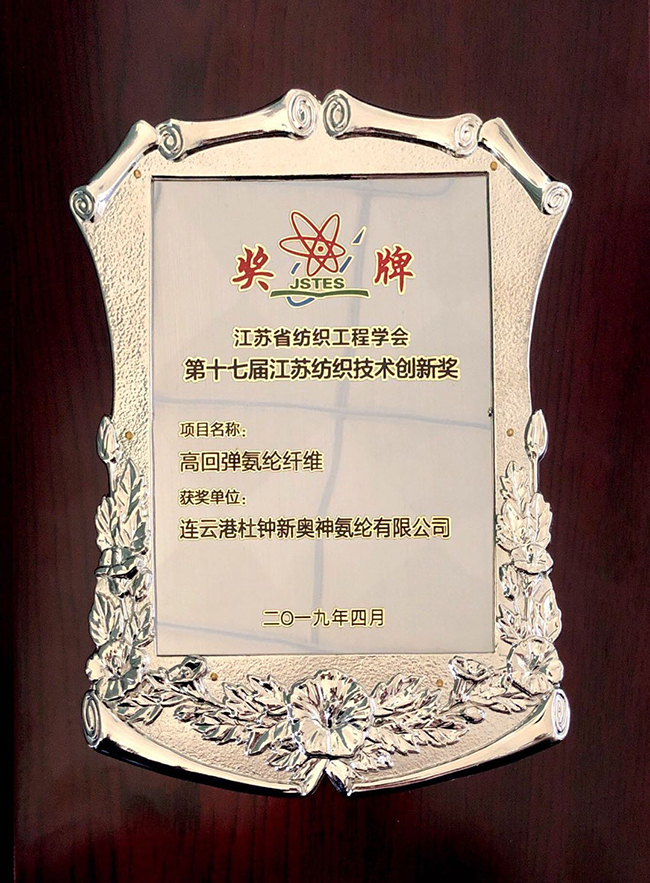 近日,經(jīng)企業(yè)申報、有關單位推薦和專家評審等流程,我公司高新技術產品“高回彈氨綸纖維”項目獲得第十七屆江蘇紡織技術創(chuàng)新獎。氨綸公司將以此為契機,大力弘揚“創(chuàng)業(yè)、創(chuàng)新、創(chuàng)優(yōu),爭先、領先、率先”的新時代江蘇精神,為建設強富美新江蘇和紡織強國作出新的貢獻。