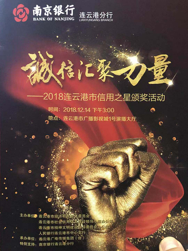 12月14日,為深入貫徹習(xí)近平總書記關(guān)于誠信建設(shè)的重要指示精神,由市經(jīng)信委、市社會信用體系建設(shè)領(lǐng)導(dǎo)小組辦公室、人民銀行連云港市中心支行主辦的“誠信匯聚力量”推介評選“港城信用之星”暨“誠信建設(shè)萬里行(連云港站)”頒獎活動在連云港市電視臺1號演播廳隆重舉行。