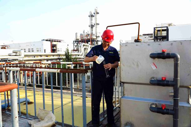 一直以來(lái),公司秉承“綠色發(fā)展”的理念,在具體操作中采用“掐頭截尾”法進(jìn)行污水排放綜合治理。“掐頭”即要求各責(zé)任部門(mén)強(qiáng)力監(jiān)督治理源頭,實(shí)施廢液進(jìn)行循環(huán)利用,對(duì)違規(guī)部門(mén)要求限期整改,情節(jié)嚴(yán)重的追究相關(guān)責(zé)任人責(zé)任。“截尾”即抓污水處理工藝提升優(yōu)化,保證污水處理設(shè)備正常運(yùn)行和污水處理質(zhì)量,不達(dá)標(biāo)堅(jiān)決不排放。與此同時(shí),主動(dòng)邀請(qǐng)環(huán)保部門(mén)和第三方權(quán)威機(jī)構(gòu)對(duì)現(xiàn)有污水處理設(shè)備提供環(huán)保法規(guī)指導(dǎo)和技術(shù)支持,水樣檢測(cè)實(shí)現(xiàn)在線檢測(cè),并與環(huán)保監(jiān)控平臺(tái)聯(lián)網(wǎng),確保工業(yè)污水達(dá)標(biāo)排放。
