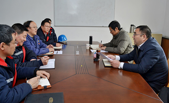 2018年3月22日,集團(tuán)公司董事長(zhǎng)楊龍、副總經(jīng)理張其海赴氨綸公司開(kāi)展調(diào)研工作。楊董事長(zhǎng)一行實(shí)地查看了氨綸公司分布式能源設(shè)備安裝、八期工程建設(shè)施工現(xiàn)場(chǎng),并組織氨綸公司領(lǐng)導(dǎo)班子成員召開(kāi)了座談會(huì)。