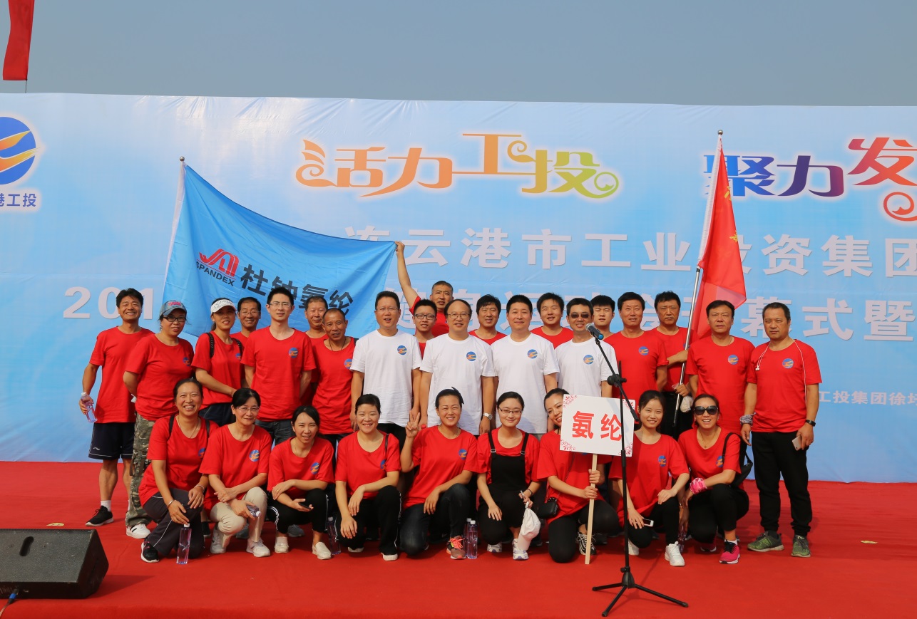 2017年9月23日,連云港市工業(yè)投資集團第一屆職工運動會開幕式暨健步走項目在徐圩云湖路南廣場舉行。集團董事長楊龍、總經(jīng)理胡建明、工會主席戴鴻鳴等集團領導出席此次活動。氨綸公司全體領導與30名員工共同參加了此次活動。