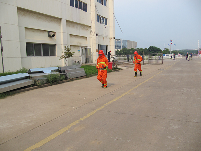 事前安全部做了充足的準(zhǔn)備,從演練方案、材料準(zhǔn)備和人員安排等方面做足準(zhǔn)備工作,先是在會議室進(jìn)行了桌面演練,確定演練方案可行后,于15:00開始正式演練。演練模擬四期二樓甬道間6線3#位導(dǎo)熱油發(fā)生泄漏起火,操作人員發(fā)現(xiàn)后,立即匯報并進(jìn)行現(xiàn)場應(yīng)急處置。后險情擴(kuò)大,公司領(lǐng)導(dǎo)啟動應(yīng)急預(yù)案,應(yīng)急行動組、現(xiàn)場控制組、后勤保障組各司其職,隔離現(xiàn)場、應(yīng)急救援、疏散人員。后在消防人員的協(xié)助下,大火被成功撲滅。演練中,全體參演人員,精神飽滿,恪盡職守,動作規(guī)范,各部門通力合作,演練共用時間20分鐘,并安排微型消防站人員穿著專用制服對現(xiàn)場進(jìn)行了巡視,確認(rèn)無人受困,整個演練過程合計從車間疏散出38人,達(dá)到了通過應(yīng)急演練鍛煉隊伍,檢驗應(yīng)急預(yù)案的目的,演練達(dá)到了預(yù)期,取得圓滿成功。