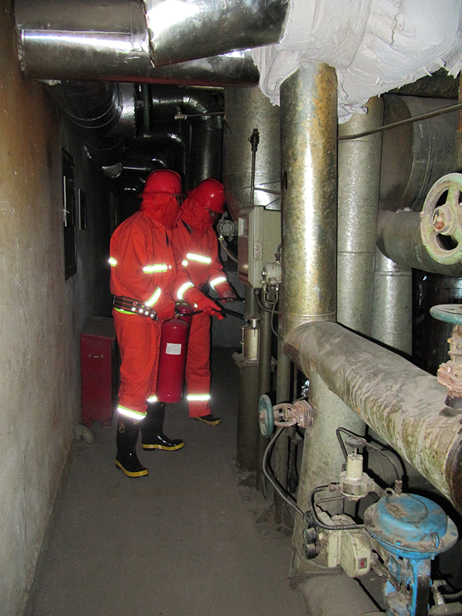 為增強(qiáng)員工安全意識,提高廣大員工面對突發(fā)事件時的應(yīng)急應(yīng)變能力,2017年8月10日下午3點,公司安全部組織甬道間導(dǎo)熱油泄漏起火應(yīng)急演練,50余名員工參與演練。