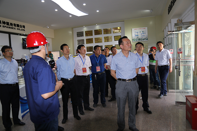 2017年5月25日,由市人大常委會領(lǐng)導陳敏帶隊,省市縣三級人大代表組成的視察組一行25人,在工投集團董事長楊龍、總經(jīng)濟師陳如軍等陪同下赴我公司參觀考察,代表團先后參觀我了公司展廳、工程建設(shè)現(xiàn)場及7期項目生產(chǎn)線,氨綸公司總經(jīng)理張斌進行了情況介紹。