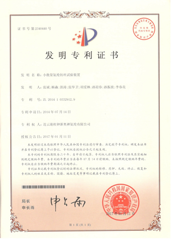 近日,氨綸公司的“小批量氨綸紡絲試驗(yàn)裝置”獲得國家知識產(chǎn)權(quán)局專利局授權(quán)(專利權(quán)號:ZL201410332912.9)。該項(xiàng)專利權(quán)具有很強(qiáng)的創(chuàng)新性和實(shí)用性,將成為公司的又一重要核心技術(shù)。