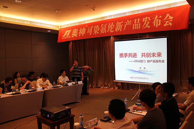 秋高氣爽,丹桂飄香。9月11日,氨綸公司聯(lián)合旗下經(jīng)銷商廈門凱澤貿(mào)易有限公司在廈門舉辦“奧神?可染氨綸新產(chǎn)品發(fā)布會”。本次發(fā)布會著重展示了公司研發(fā)的新產(chǎn)品可染氨綸系列,成為本次發(fā)布會的亮點(diǎn)。