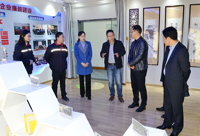 2018年11月29日,連云港市紀(jì)委宣傳部部長(zhǎng)蔣頌華帶領(lǐng)驗(yàn)收組赴杜鐘氨綸公司開(kāi)展“市級(jí)廉政文化教育基地”驗(yàn)收工作,集團(tuán)公司紀(jì)委書(shū)記汪群、副書(shū)記王建松陪同。