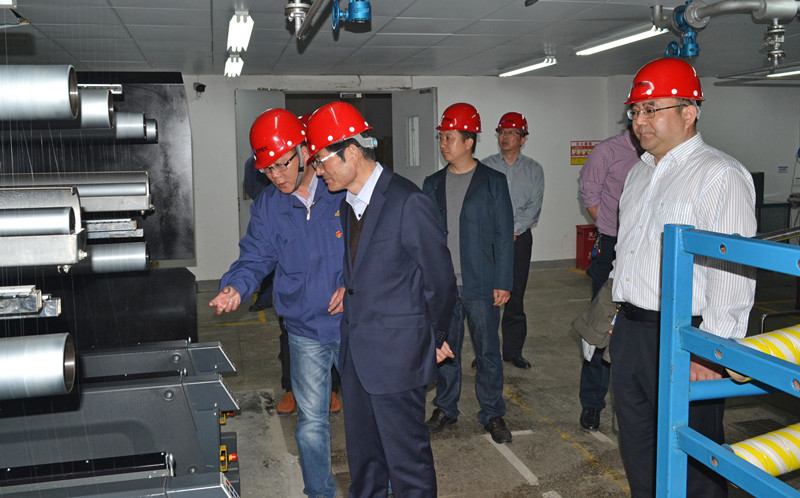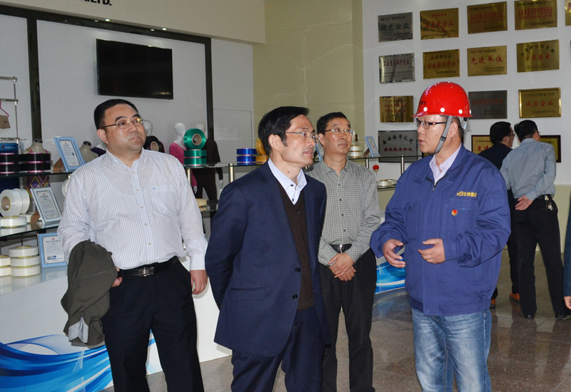 徐丙超主任一行先后參觀了公司展廳、七期生產(chǎn)現(xiàn)場(chǎng)、倉(cāng)庫(kù)等地,聽(tīng)取了企業(yè)介紹,并饒有興趣地詢(xún)問(wèn)了解了關(guān)于氨綸生產(chǎn)工藝、流程、市場(chǎng)、應(yīng)用等方面的信息。