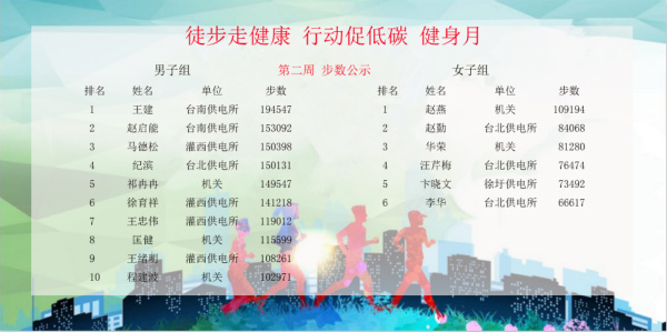 因?yàn)椤拔⑿胚\(yùn)動(dòng)”的互動(dòng)性和競(jìng)爭(zhēng)性,促使越來(lái)越多的職工開(kāi)始有意識(shí)地外出“走兩步”,在職工中形成了你超我趕的良好運(yùn)動(dòng)氛圍,有效減少了員工開(kāi)車出行的頻率,增加了員工參與戶外活動(dòng)、親近自然的興致?;顒?dòng)已經(jīng)進(jìn)行了兩周,已有10人步數(shù)超過(guò)20萬(wàn),最高者已經(jīng)達(dá)到34萬(wàn),人均步數(shù)比活動(dòng)前增加了50%,效果十分顯著。(電宣)