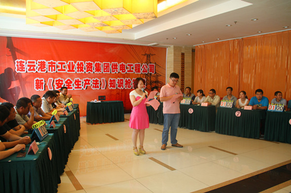 為了增強企業(yè)員工的安全意識,強化安全生產(chǎn)依法治理。近日,公司在淮鹽大酒店舉行安全知識搶答賽。來自該公司機關(guān)及各單位的8支代表隊共24名選手參加了比賽。