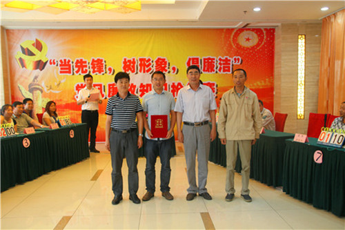 6月30日,公司在淮鹽大酒店一樓大廳舉辦了“當(dāng)先鋒,樹形象,倡廉潔”為主題的黨風(fēng)廉政知識搶答賽。公司領(lǐng)導(dǎo)及機(jī)關(guān)、淮鹽、農(nóng)場、市場全體黨員干部觀看了比賽。