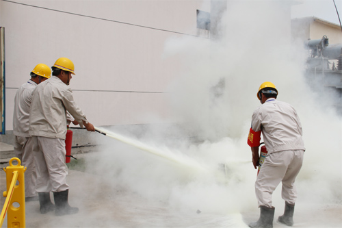 演練假設(shè)灌西變電所35千伏在用1號(hào)主變?cè)谶\(yùn)行過(guò)程中突然起火,火勢(shì)危及變電所的安全運(yùn)行,情況十分危急?;馂?zāi)發(fā)生后,變電所值班人員立即向所領(lǐng)導(dǎo)報(bào)告,按指示啟動(dòng)滅火應(yīng)急預(yù)案。滅火過(guò)程中,共動(dòng)用4支滅火器從不同角度對(duì)火勢(shì)進(jìn)行壓制。經(jīng)過(guò)半個(gè)小時(shí)的協(xié)同作戰(zhàn),值班人員準(zhǔn)確、快捷、安全地完成了滅火演習(xí)過(guò)程,演練取得圓滿成功。
