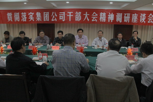 10月17日下午,集團公司在淮鹽大酒店召開貫徹落實干部大會精神調(diào)研座談會,供電公司、供銷公司、航運公司、雙菱集團、房地產(chǎn)公司等直屬單位主要負責人及其分管經(jīng)營負責人和總部相關(guān)部門負責人參加座談。集團公司董事長、黨委書記顧永庚;總經(jīng)理胡建明;黨委副書記、紀委書記鄭宜虎;副總經(jīng)理楊國新等領(lǐng)導(dǎo)出席了會議。顧永庚董事長作了重要講話,對管理體制機制的變革以及相關(guān)工作提出了指導(dǎo)性思路和要求。