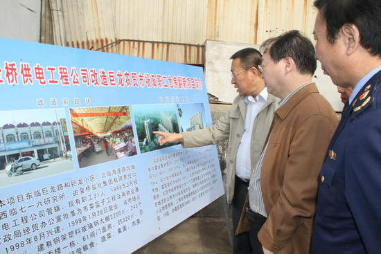 在巨龍農(nóng)貿(mào)市場(chǎng),范總向秦國丞副秘長簡(jiǎn)要匯報(bào)了巨龍農(nóng)貿(mào)市場(chǎng)的基本情況以及改造方案,通過改造實(shí)現(xiàn)市場(chǎng)空間布局合理化、設(shè)施建設(shè)標(biāo)準(zhǔn)化、長效菅理規(guī)范化的總體目標(biāo)。秦國丞副秘書長對(duì)公司巨龍農(nóng)貿(mào)市場(chǎng)的改造方案給予較高評(píng)價(jià),充分肯定了公司在創(chuàng)建國家文明衛(wèi)生城市、加強(qiáng)我市菜藍(lán)子工程建設(shè)、提升群眾幸福指數(shù)方面作出的貢獻(xiàn);同時(shí),要求我公司繼續(xù)深入調(diào)研,盡快制定具體實(shí)施方案,報(bào)政府部門審批;并指示隨行的有關(guān)部門人員,要給予全力配合,對(duì)改善民生工程開綠燈。(司宣 盧正清)