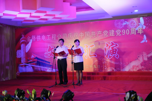 6月29日,公司為慶祝建黨90周年,隆重舉行文藝匯演。集團(tuán)公司黨委副書記、紀(jì)委書記鄭宜虎,工會主席戴鴻鳴,有關(guān)部門負(fù)責(zé)人,以及部分離退休老干部應(yīng)邀出席。 演出節(jié)目既有詩朗誦《七月,為黨歌唱》、大合唱《共架金橋》、女聲獨唱《走進(jìn)新時代》等,又有公司自創(chuàng)、自編、自導(dǎo)的搖滾快板《金橋供電在崛起》、相聲《誰聰明》、舞蹈《螃蟹調(diào)》等。整個演出大氣磅礴,精彩紛呈,掌聲不斷。(司宣)