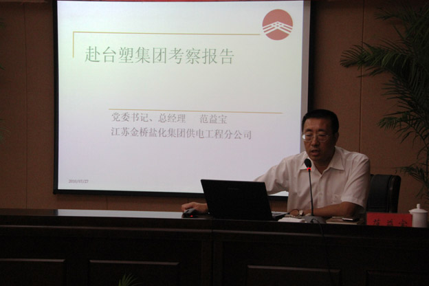 范益寶總經(jīng)理向與會(huì)人員介紹了赴臺(tái)灣臺(tái)塑集團(tuán)等企業(yè)考察取得的成果,并詳細(xì)介紹了臺(tái)塑集團(tuán)的四個(gè)發(fā)展階段和實(shí)現(xiàn)的兩個(gè)飛躍;在臺(tái)塑57年的歷史中兩次突破性的飛躍締造了臺(tái)塑今天石油王國(guó)的地位。第一次飛躍是1957年建成仁武廠(chǎng),期間經(jīng)歷了37年時(shí)間的擴(kuò)建,至1992年形成了一個(gè)較為完整的氯堿產(chǎn)業(yè)鏈。營(yíng)業(yè)額由2.9億增加到550億,實(shí)現(xiàn)了由小到大的第一次歷史性飛躍。第二次飛躍是從1993年開(kāi)始填海造地,實(shí)施六輕計(jì)劃。范總還介紹了參觀(guān)考察臺(tái)塑的五點(diǎn)體會(huì):1、企業(yè)文化是企業(yè)發(fā)展的基石;2、科學(xué)合理的機(jī)制是企業(yè)永續(xù)發(fā)展的法寶;3、細(xì)節(jié)是企業(yè)追求合理化的根本;4、堅(jiān)持是企業(yè)獲得成功的關(guān)鍵;5、機(jī)遇垂青有戰(zhàn)略眼光的企業(yè)家。