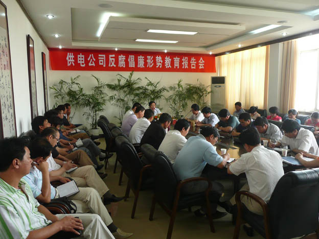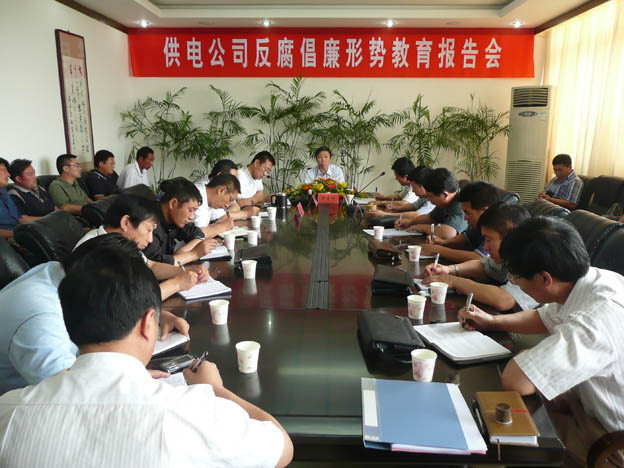 近日,我公司邀請了市紀(jì)委常委、市紀(jì)委秘書長、市監(jiān)察局副局長雷生保同志來我公司作反腐倡廉形勢教育報(bào)告,公司領(lǐng)導(dǎo)、機(jī)關(guān)中層干部、各供電所領(lǐng)導(dǎo)班子及部分職工代表參加了會議。