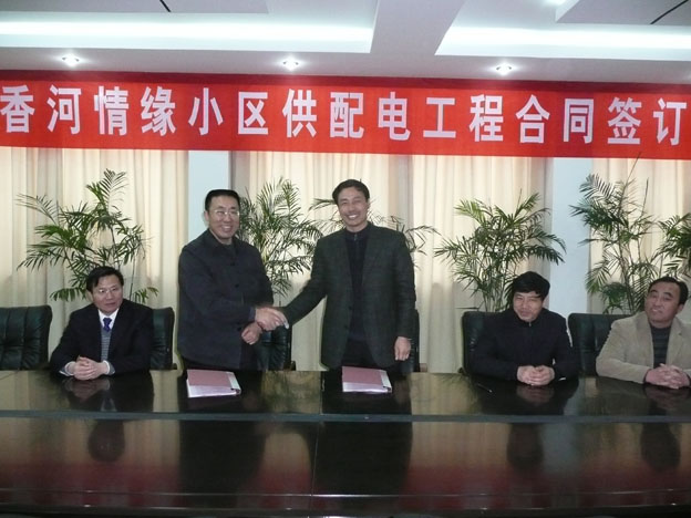4月2日下午,我公司舉行“香河情緣”小區(qū)供配電工程簽字儀式。公司書記、經(jīng)理范益寶、副經(jīng)理徐開金、臺南鹽場場長陳汝軍、徐圩鹽場場長劉長兵、副場長郁洪軍以及公司和臺南鹽場有關(guān)部門負責人參加了簽字儀式?!跋愫忧榫墶毙^(qū)是集團公司鹽場職工安居工程。此小區(qū)的建成使用,將大大改善臺南鹽場和徐圩鹽場職工居住條件。