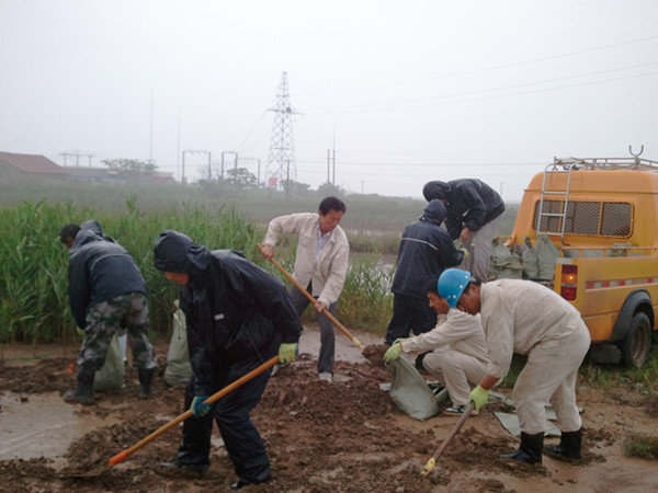徐圩供電所接到防風防暴指令后,立即組織全所人員進入應急防汛狀態(tài)。