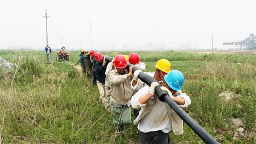 16日上午6點(diǎn)鐘左右,該所集合全部力量趕赴縱4路工程現(xiàn)場(chǎng)。在施工過程中,由于電纜線外套波紋管工作無法用機(jī)械完成,只能人工作業(yè)。該所除登高和外派作業(yè)人員外,其余人員密切配合,通力協(xié)作。他們不分工種、不計(jì)得失、不遺余力,喊著口號(hào)、邁著步子,用肩膀抗著波紋管,一步一個(gè)腳印,終于在中午12點(diǎn)成功將150米電纜套上波紋管。結(jié)束后才發(fā)現(xiàn)很多人的肩膀都磨出了淤血。為了搶在市網(wǎng)送電之前完成線路改造,該所在中午1點(diǎn)左右繼續(xù)趕工,最終在3點(diǎn)前將線路鋪設(shè)到位。(張偉孫維兵)