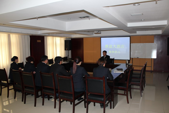 11月21日上午,淮鹽大酒店組織領(lǐng)班以上領(lǐng)導干部,再次集體學習酒店管理方面的知識。