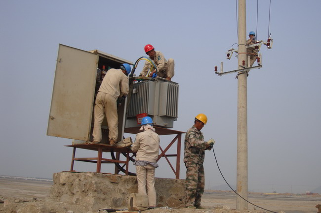 金海一期二次B3區(qū)加固地基工程要求在5月10前具備全面抽真空條件。臺北供電所承擔此項電力工程,需架設(shè)10千伏線路2280米,安裝19臺變壓器及配電箱,工程總量170萬元。為使工程按時完成,維護供電所的信譽,展示自己的實力,該所細心謀劃,調(diào)配車輛,拉材備料,認真組織人力抓緊施工?,F(xiàn)場施工條件惡劣,亂石堆放,腳下無路,給施工作業(yè)帶來重重困難。職工作業(yè)汗流浹背,吃苦耐勞,無怨無悔。憑著頑強的斗志,認真地堅守的崗位,聚精會神地操作,為連云新城“一年拉框架,兩年出形象,三年基本建成”的戰(zhàn)略建設(shè),奉獻自己的力量。