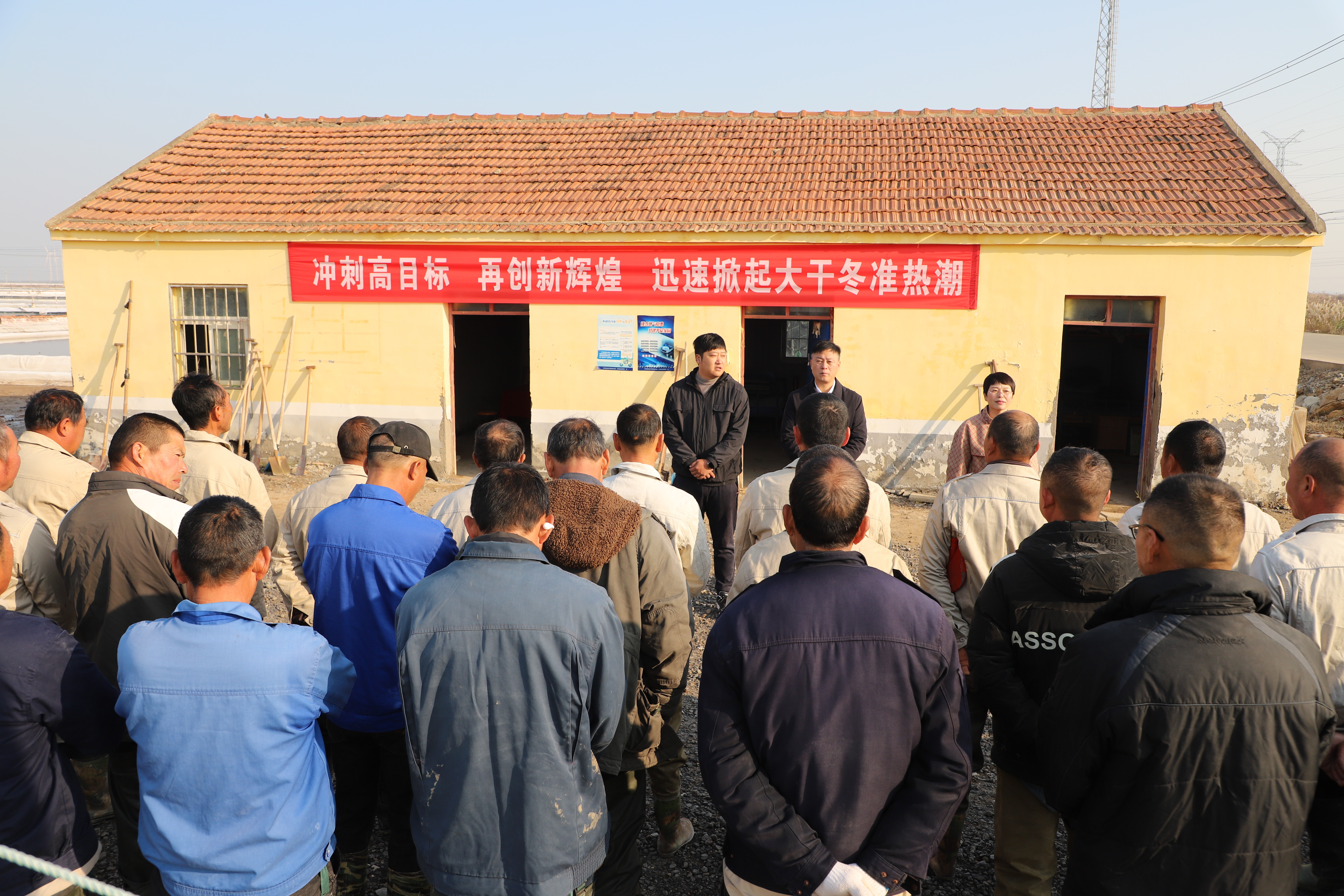 在新河制鹽分公司12班灘頭,常務(wù)副總經(jīng)理徐一林對(duì)冬準(zhǔn)工作提出要求,總經(jīng)理吳衛(wèi)平宣布“‘薪火灌筑 匠星西傳’師徒結(jié)對(duì)擂臺(tái)賽”正式開始!