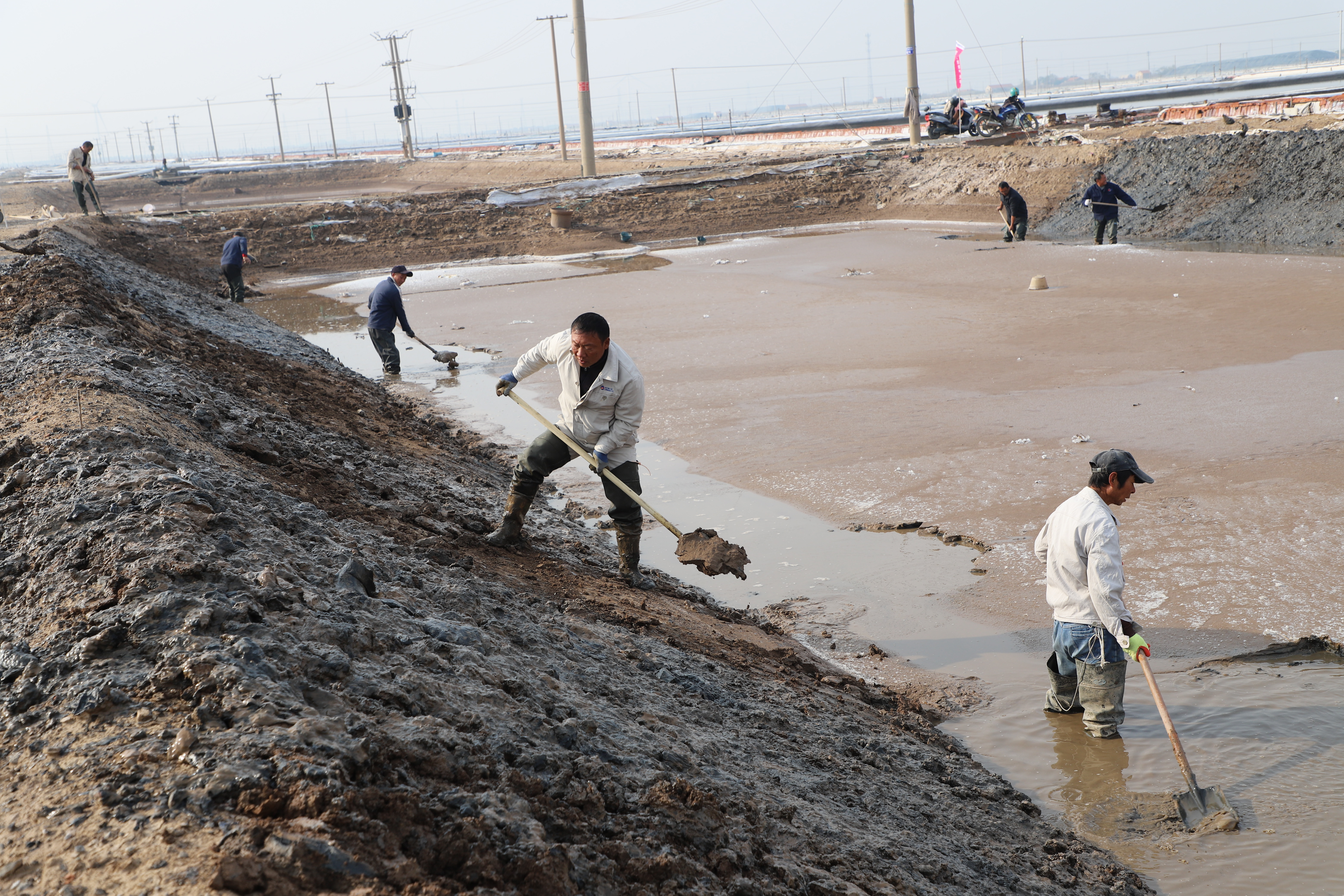 寒冬時(shí)節(jié),暖陽(yáng)之下,鹽廩之旁,曬得黝黑的鹽場(chǎng)產(chǎn)業(yè)工人們按照競(jìng)賽的考核標(biāo)準(zhǔn),做熟泥、打堰墻、做堰頂,護(hù)埝頂、夯埝坡、清塘底,見證了一場(chǎng)技能比拼的盛會(huì)。經(jīng)過(guò)一天的鏖戰(zhàn),盧正兵、靳新邦、匡洪忠?guī)熗饺〉昧顺匮咝拚那叭?;林樹軍、潘成軍、胡繼華師徒取得了土塘清淤的前三名。(西工)