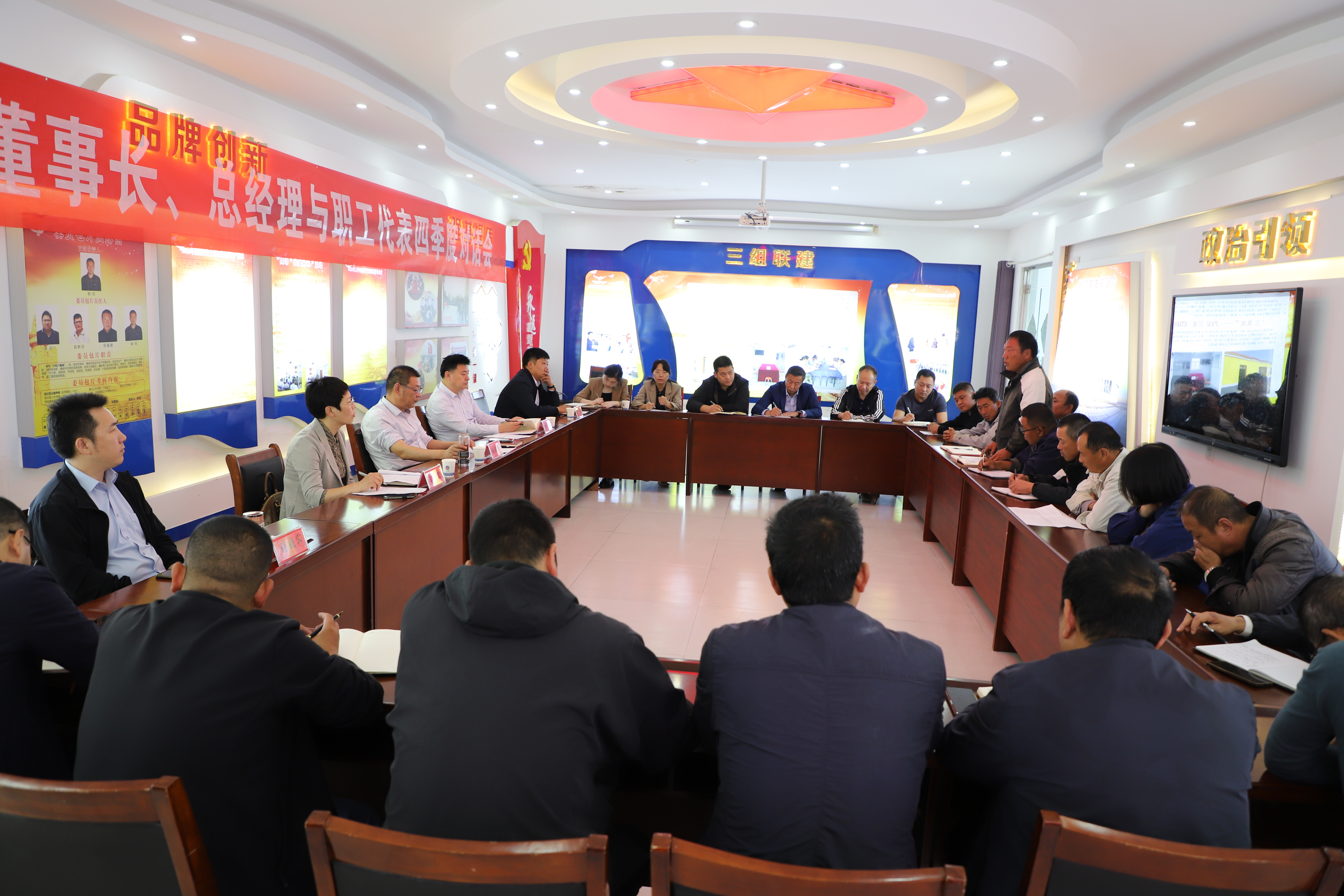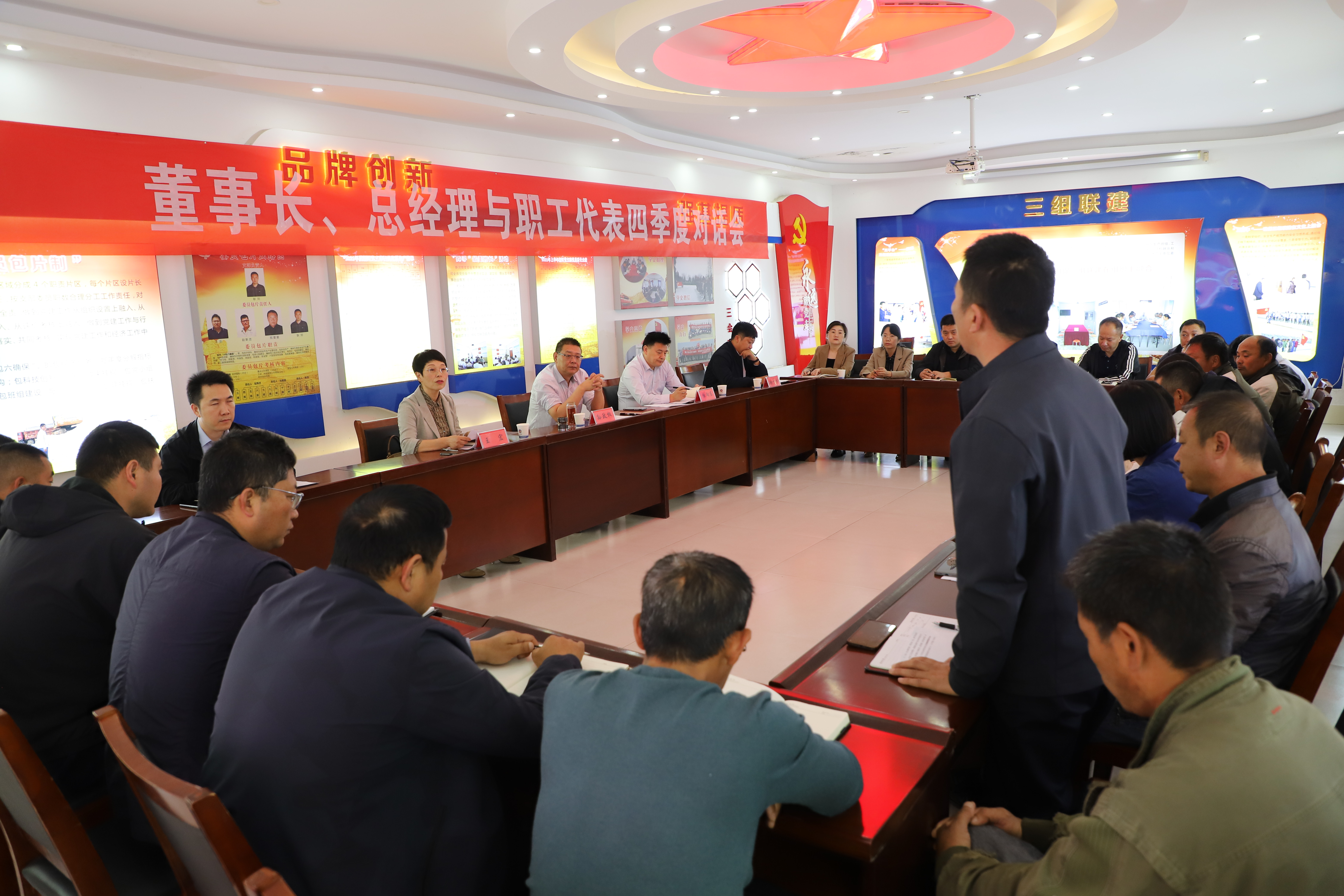 2023年10月19日下午,產(chǎn)業(yè)工人代表與公司董事長(zhǎng)、總經(jīng)理齊聚一堂,就生產(chǎn)生活中遇到的問(wèn)題提建議、獻(xiàn)良策。