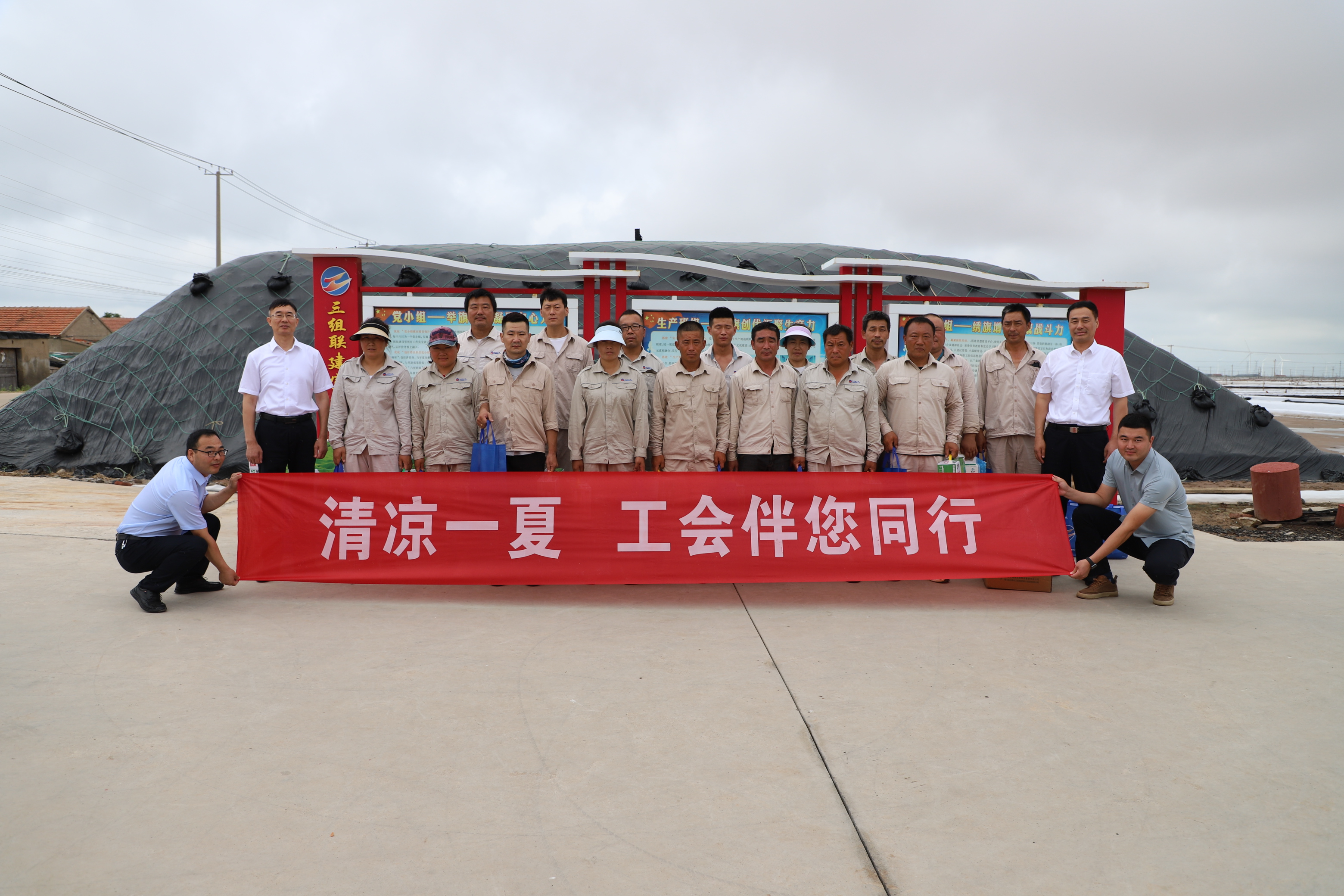 “高溫天氣,大伙兒一定要注意勞逸結(jié)合。”“感謝大家的辛勤付出,這些防暑物品僅是我們的一點(diǎn)心意?!睆埩忠恍衼淼饺諘裰汽}新河分公司八班灘頭,為他們送去綠豆、白糖等慰問品。一聲問候、幾句家常,緩解了鹽工們的疲憊,讓他們感受到了實(shí)實(shí)在在的溫暖。
