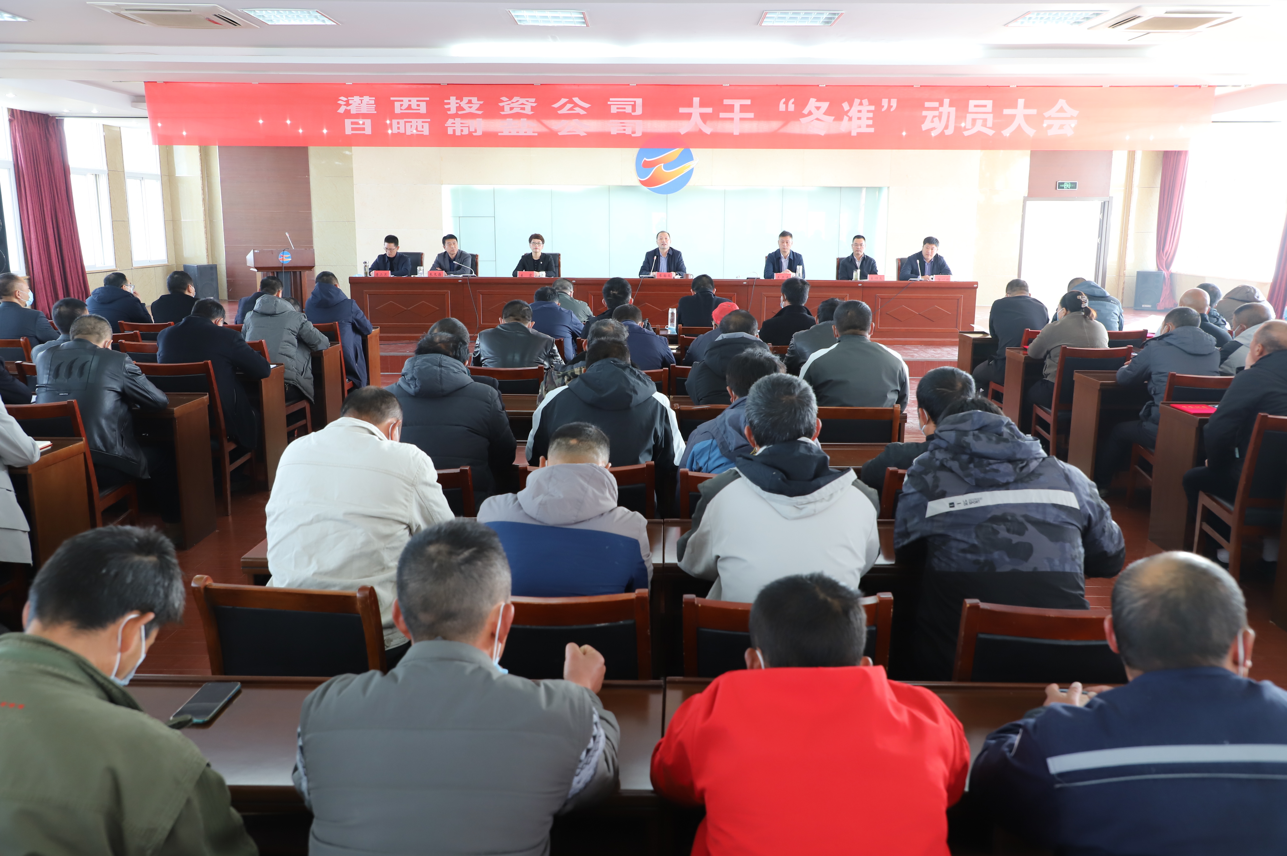 11月19日,灌西投資公司、日曬制鹽公司在機關五樓召開大干“冬準”動員大會,全面部署冬準工作,切實做好今冬明春的各項工作,投資公司班子成員,各單位黨政負責人、機關副職級以上管理人員、全體班組長及受表彰人員參加會議。