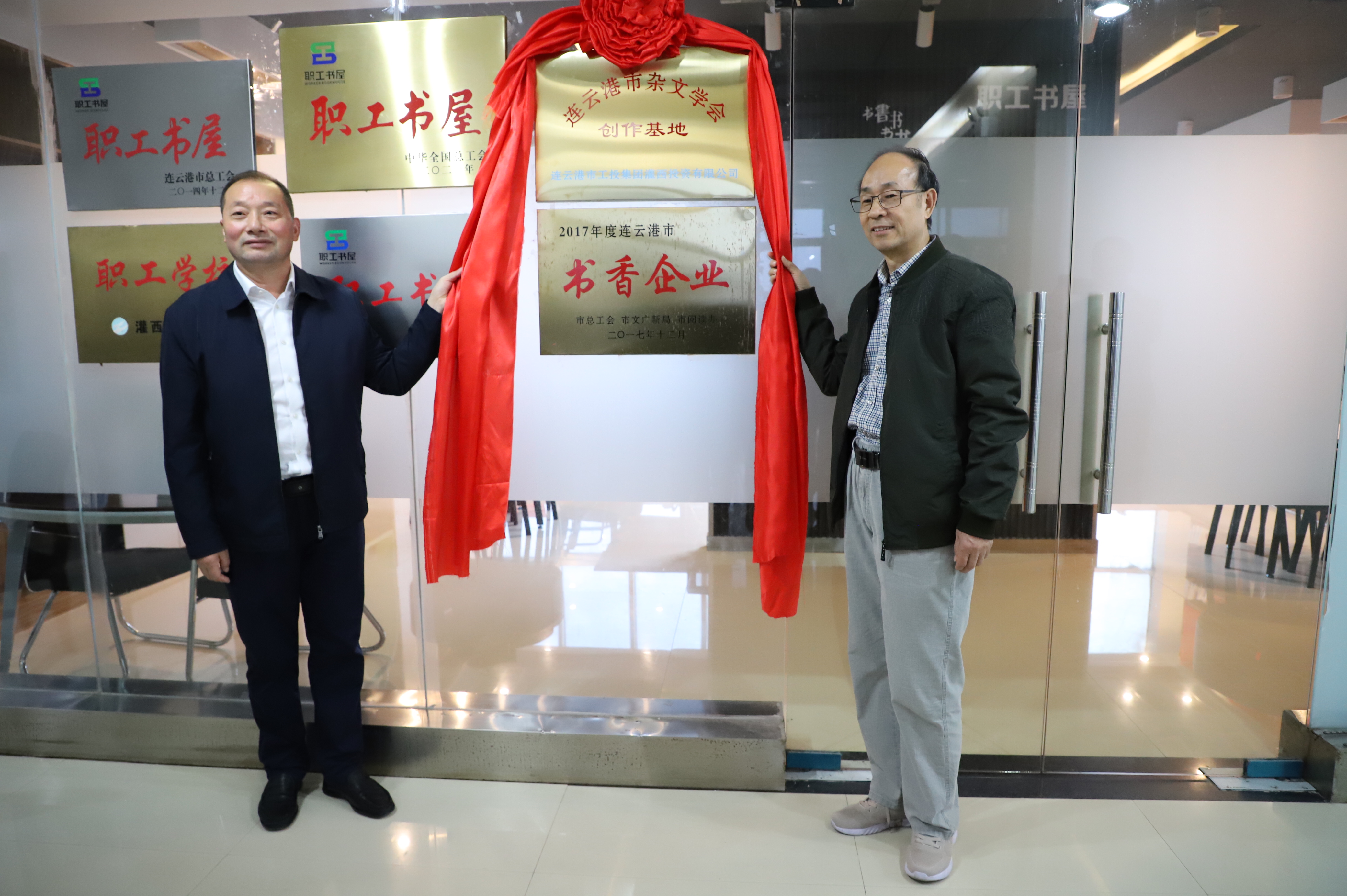 11月3日,連云港市雜文學會創(chuàng)作基地掛牌儀式在灌西投資公司職工書屋舉行,市雜文學會會長李正冬一行為灌西公司授牌,公司黨委書記、董事長、總經理李國文,黨委副書記、工會主席王宏等參加掛牌儀式。
