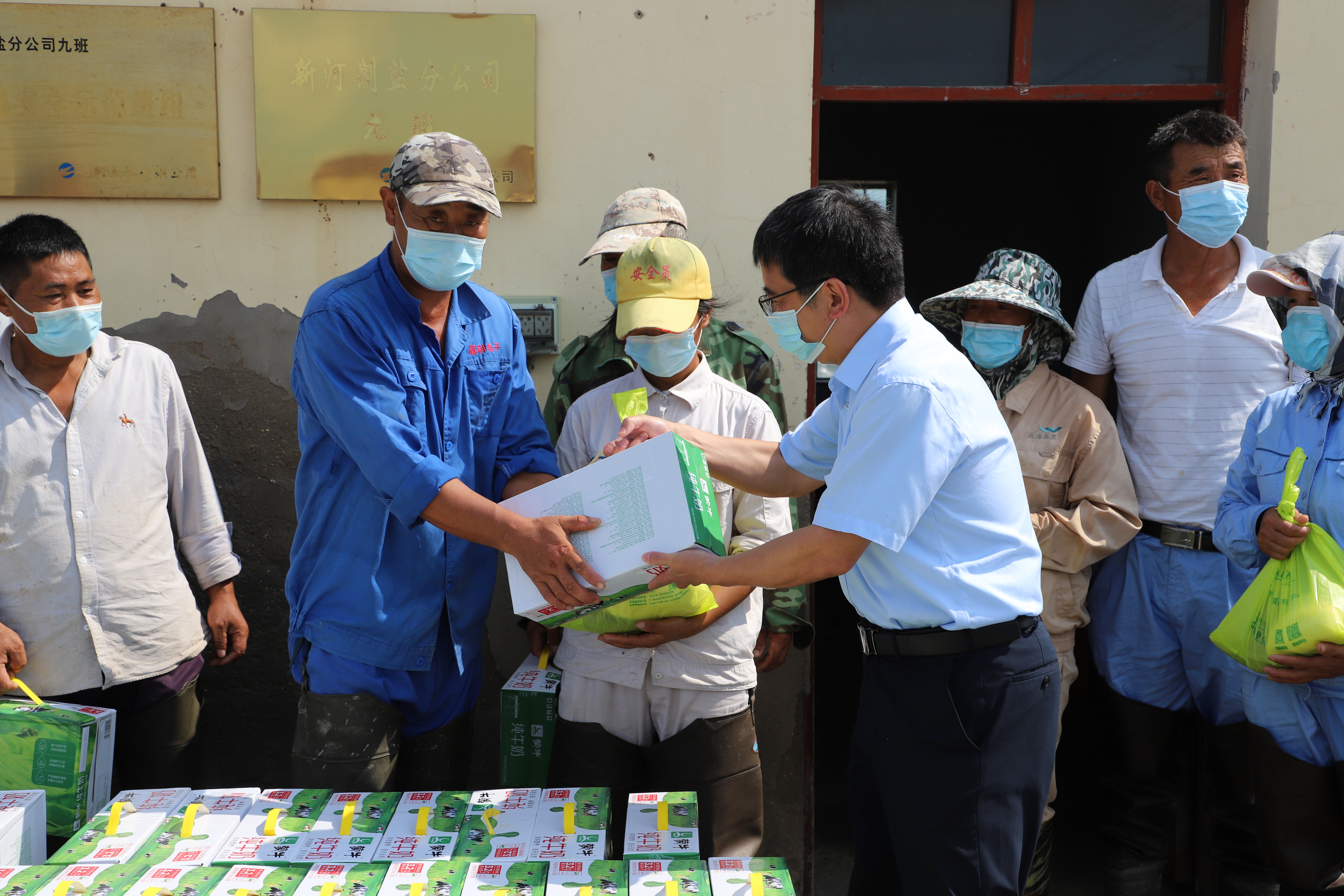 在新河制鹽分公司九班,楊國新代表集團公司向堅持在鹽業(yè)生產一線的工人們表示深切的感謝和慰問,感謝他們在烈日下為集團所付出的辛勞,并叮囑他們要避開高溫時段,科學合理安排好工作時間,既要保證生產質量和進度,又要注意防疫和高溫生產安全。