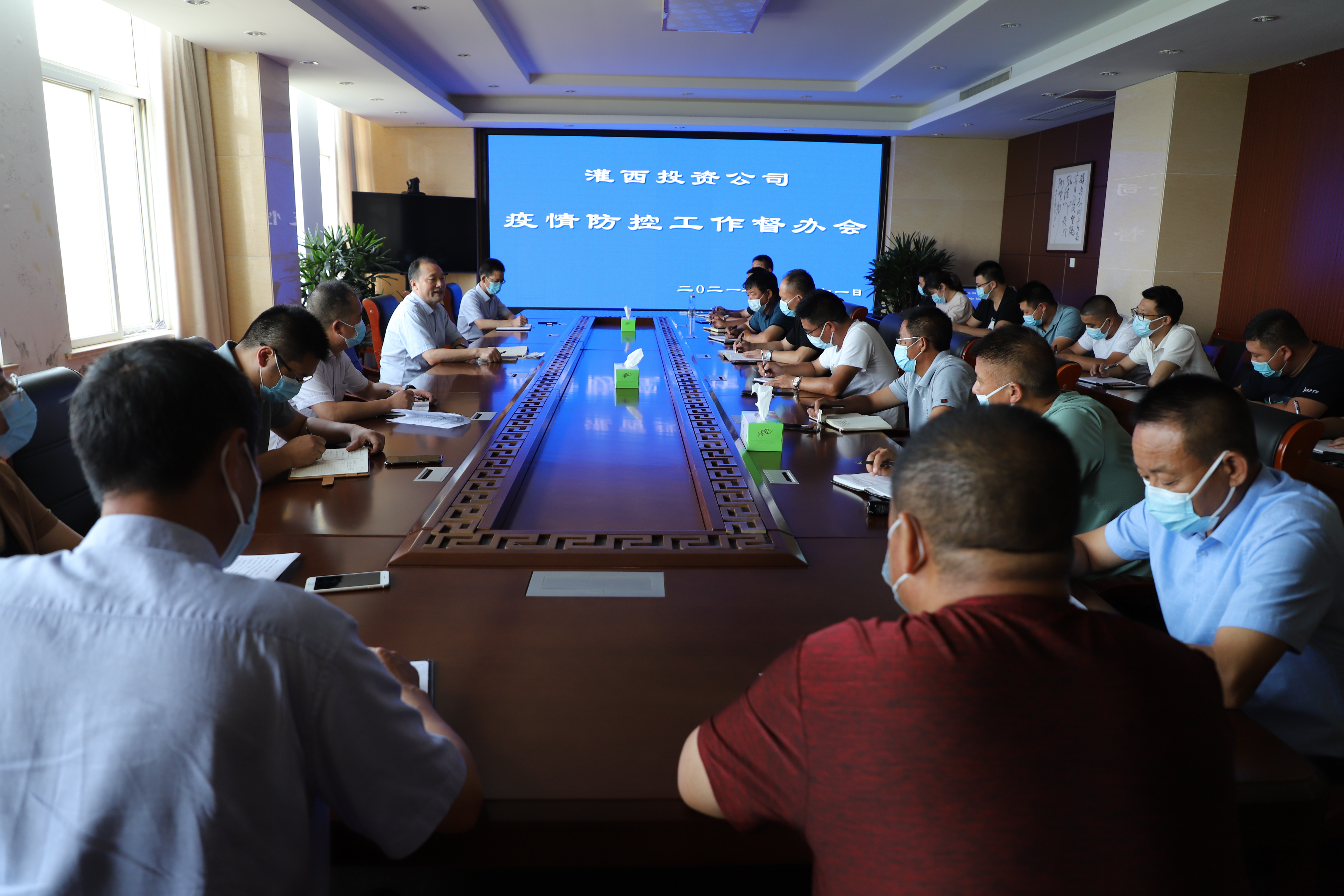 7月31日下午,灌西投資公司在三樓會議召開疫情防控工作督辦會,公司黨委書記、董事長、總經(jīng)理李國文、黨委副書記、工會主席王宏、總經(jīng)理助理潘二衛(wèi),疫情防控工作組成員、各部門單位行政負(fù)責(zé)人參加會議,燕尾港鎮(zhèn)有關(guān)領(lǐng)導(dǎo)出席了此次會議。