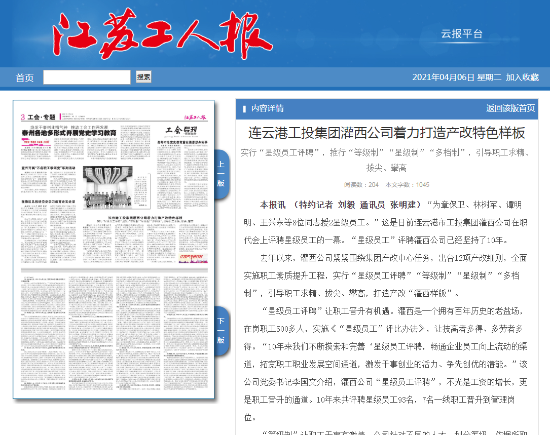 “星級(jí)員工評(píng)聘”讓職工晉升有機(jī)遇。灌西是一個(gè)擁有百年歷史的老鹽場(chǎng),在崗職工500多人,實(shí)施《“星級(jí)員工”評(píng)比辦法》,讓技高者多得、多勞者多得?!?0年來(lái)我們不斷摸索和完善‘星級(jí)員工評(píng)聘,暢通企業(yè)員工向上流動(dòng)的渠道,拓寬職工職業(yè)發(fā)展空間通道,激發(fā)干事創(chuàng)業(yè)的活力、爭(zhēng)先創(chuàng)優(yōu)的潛能?!痹摴军h委書記李國(guó)文介紹,灌西公司“星級(jí)員工評(píng)聘”,不光是工資的增長(zhǎng),更是職工晉升的通道。10年來(lái)共評(píng)聘星級(jí)員工93名,7名一線職工晉升到管理崗位。