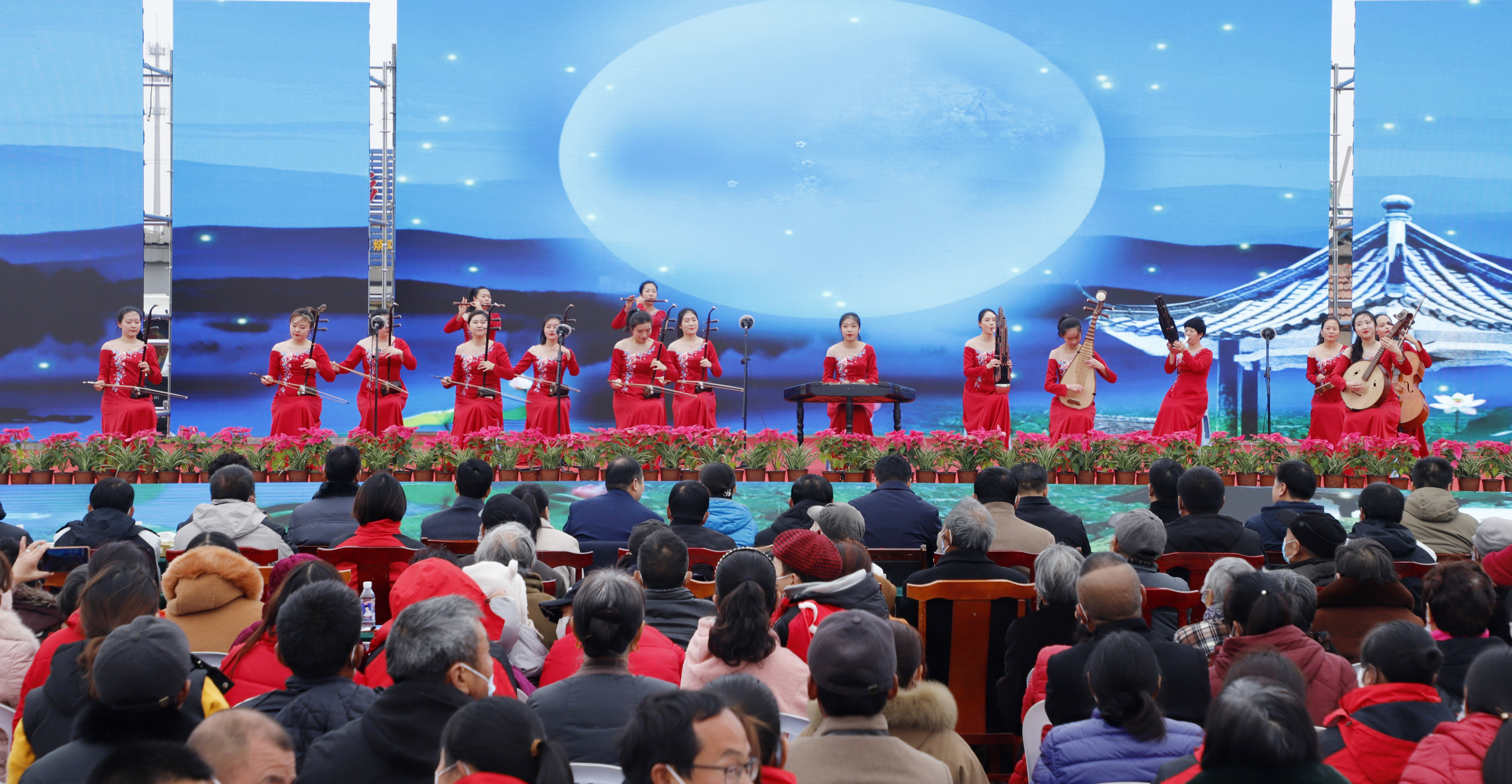 演出在精彩的合奏《水鄉(xiāng)情韻花好月圓》中拉開序幕,現(xiàn)場(chǎng)洋溢著歡樂的氣氛。健身操《向快樂出發(fā)》節(jié)奏歡快,動(dòng)作利落灑脫,盡情釋放青春活力,獨(dú)舞《浣》旋律優(yōu)美,衣袖舞動(dòng),舞出溫婉柔美之態(tài)?,F(xiàn)代與古典、活力與韻味的巧妙結(jié)合,為現(xiàn)場(chǎng)觀眾帶來了一場(chǎng)視覺上的盛宴。男聲獨(dú)唱《我是真英雄》、二胡獨(dú)奏《太極琴俠》、舞蹈《我和我的祖國(guó)》,以及民樂合奏《樂見西游》,悅耳的人聲與悠遠(yuǎn)的琴聲合鳴共振,營(yíng)造出悠揚(yáng)美妙的音樂劇場(chǎng)。相聲《歡聲笑語(yǔ)》和淮海戲《借靴》語(yǔ)言幽默風(fēng)趣,劇情跌宕起伏,演員與臺(tái)下觀眾時(shí)不時(shí)的互動(dòng)更是掀起了一波又一波的高潮。最終,精彩紛呈的演出在女聲獨(dú)唱《錦繡前程》中落下帷幕。