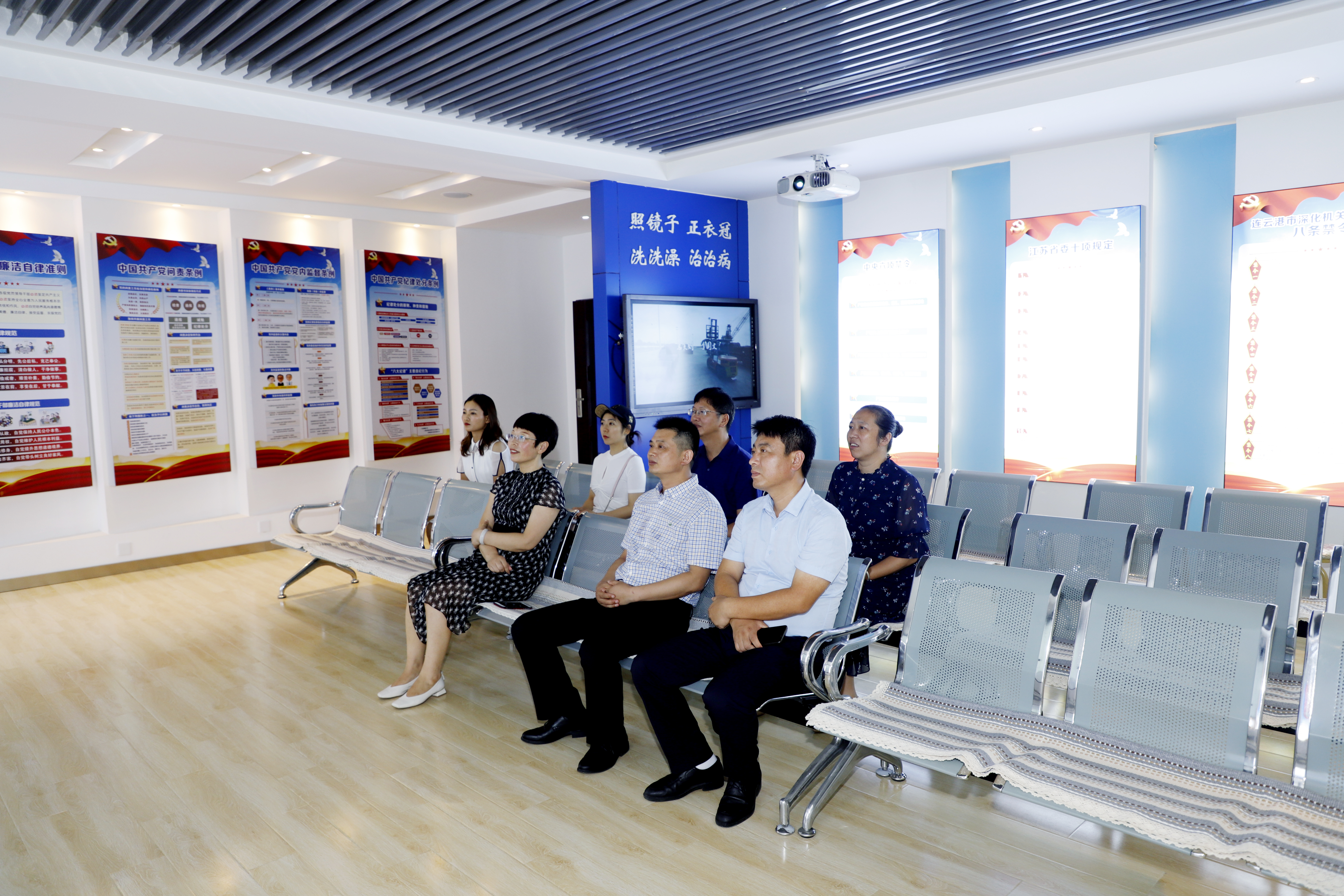 劉殿龍一行了解了灌西投資公司經(jīng)驗狀況,參觀了廉政文化展廳,在廉政教育室一起觀看了灌西投資公司自導(dǎo)自演的廉政微電影《灌河上歌》,感受灌西廉政文化氛圍。
