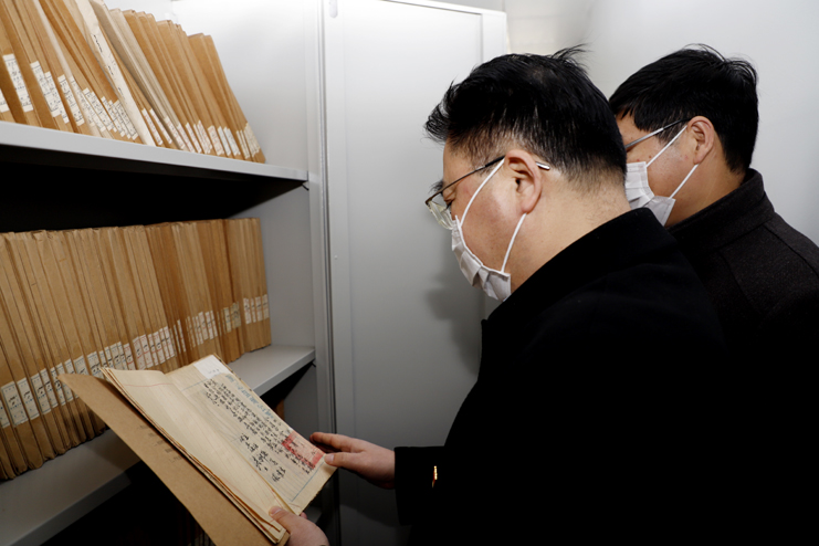 戴鴻鳴一行先后到宵洋五灌河碼頭、公濟(jì)公司遺址、機(jī)關(guān)檔案室等地實(shí)地調(diào)研。在宵洋五灌河碼頭參觀了新建的黨員活動(dòng)室和職工食堂,并仔細(xì)詢問了炊事員每天伙食情況、用餐人數(shù)、用餐時(shí)間等。在公濟(jì)公司遺址查看建筑保存情況,并聽取了公濟(jì)公司遺址相關(guān)保護(hù)情況的介紹。在機(jī)關(guān)檔案室仔細(xì)參看翻閱了灌西歷史檔案。隨后在機(jī)關(guān)三樓會(huì)議室召開集團(tuán)公司黨建工作灌西調(diào)研會(huì)。