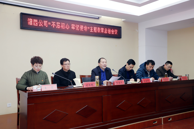 1月16日下午,灌西投資公司在機關(guān)四樓會議室召開“不忘初心、牢記使命”主題教育總結(jié)會議。投資公司主題教育領(lǐng)導小組組長、黨委書記、董事長、總經(jīng)理李國文作主題教育總結(jié)講話。集團第四指導組組長王建松到會指導并講話。公司黨委副書記、紀委書記、工會主席王宏主持會議,各單位黨政主要負責人、黨群工作部、公司黨委主題教育領(lǐng)導小組辦公室、機關(guān)全體黨員參加會議。