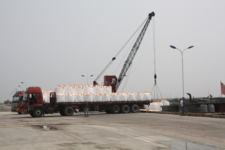 據(jù)了解,在國慶長假期間,該公司對(duì)各項(xiàng)工作做了充分的準(zhǔn)備,加強(qiáng)節(jié)日期間碼頭正常運(yùn)營管理,對(duì)碼頭工人進(jìn)行了排班,對(duì)吊裝設(shè)備、裝卸人員進(jìn)行細(xì)致的安排部署,確保了國慶長假生產(chǎn)經(jīng)營不停息。雨日過后,從3日開始,五灌河碼頭就是一派車水馬龍景象,只見一輛輛滿載噸袋的運(yùn)輸卡車整齊的停放在路邊,一艘艘貨船在泊位上靜靜停泊等待,兩臺(tái)吊車正在進(jìn)行著噸袋吊裝,掛鉤、移動(dòng)、解鉤,車上船艙內(nèi)工人密切配合,動(dòng)作熟練,將潔白的噸袋穩(wěn)穩(wěn)地裝船,每天吊裝噸袋30多車。在不遠(yuǎn)處的自卸碼頭,一輛輛運(yùn)鹽車輛,通過卸鹽滑板,直接將滿車斗的鹽倒入船艙,僅兩三天就裝鹽2000余噸。(季興勝)