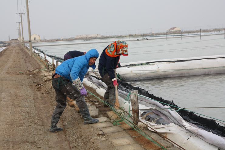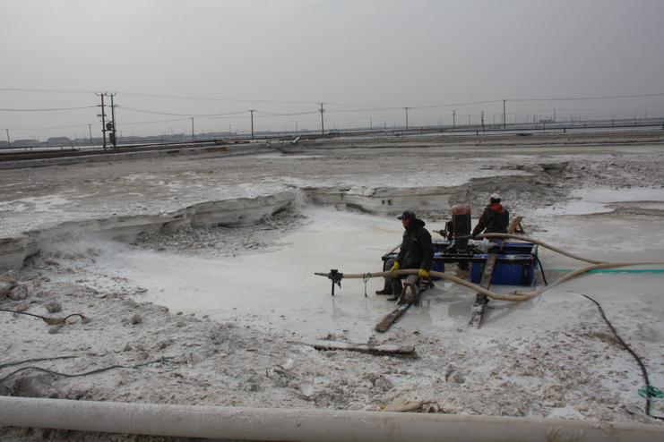 2月6日上午,在新河制鹽分公司的九班,我們看到工人們正在下馬格內(nèi)和格,為盡快灌池生產(chǎn)打好基礎(chǔ),在十班,工人有的正在清除硫酸鈣,有的修整結(jié)晶池埝,而在八班的灘頭,一臺(tái)挖掘機(jī)正在鹽廩上裝鹽銷售,日曬制鹽公司廣大員工掀起春季生產(chǎn)熱潮,處處都是忙碌景象。據(jù)了解,隨著市場(chǎng)回暖,日曬制鹽公司的原鹽銷售較前兩年同期無論是在數(shù)量上,還是在價(jià)格上都有所增長。為了抓住這一難得的銷售機(jī)遇,不斷擴(kuò)大市場(chǎng)占有率,公司計(jì)劃組織兩個(gè)制鹽分公司在近期開展扒鹽工作,以確保原鹽銷售工作不中斷。為此,各生產(chǎn)單位緊緊圍繞這一工作重心,在抓好日常生產(chǎn)的同時(shí),精心做好扒鹽前的各項(xiàng)準(zhǔn)備工作,努力確保扒鹽工作正常有序開展。與此同時(shí),部分尚不具備扒鹽條件的班組則抓緊時(shí)間做好除硫池清理、撤格池板的整平以及土工布更換等工作,為春季生產(chǎn)做好各項(xiàng)準(zhǔn)備工作。(封楊)