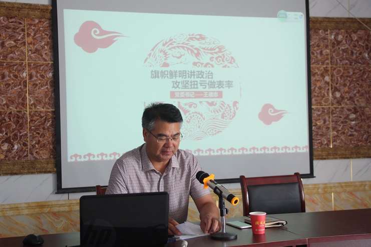 7月20日下午,投資公司黨委書記、董事長王德志圍繞“旗幟鮮明講政·攻堅(jiān)扭虧做表率”這個(gè)主題,在生產(chǎn)服務(wù)公司會(huì)議室為日曬制鹽片區(qū)黨員干部上專題黨課,強(qiáng)調(diào)各級(jí)黨組織和廣大黨員干部要全面落實(shí)省市委最新部署要求,切實(shí)增強(qiáng)旗幟鮮明講政治的思想自覺和行動(dòng)自覺。