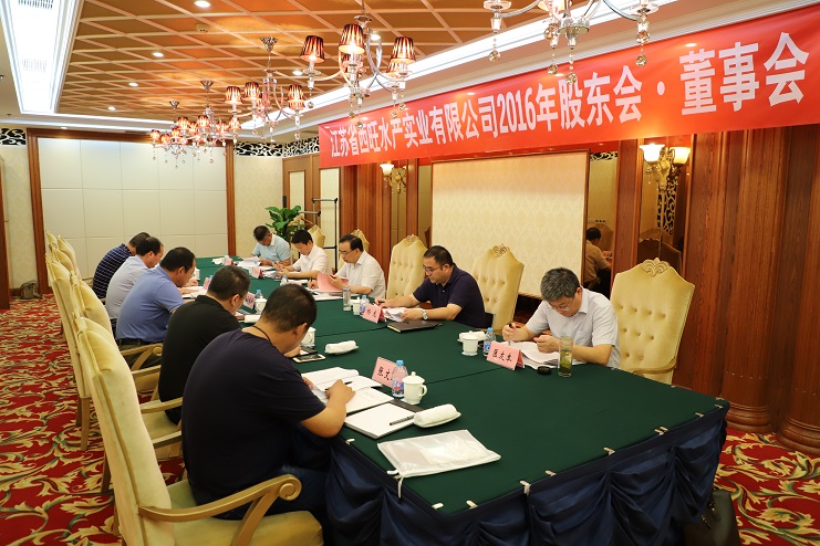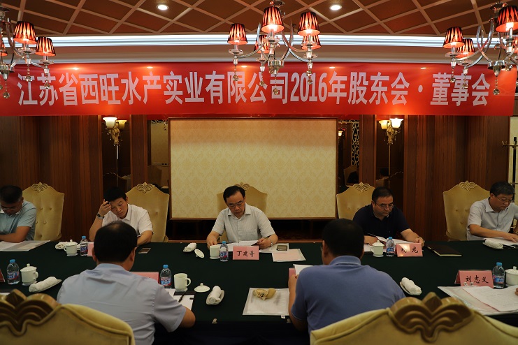 8月24日,江蘇省西旺水產(chǎn)實業(yè)公司2016年股東會、董事會在墟溝召開,省沿海開發(fā)集團(tuán)總經(jīng)理丁建奇、副總經(jīng)理周金陽,連云港市工業(yè)投資集團(tuán)董事長楊龍、總會計師匡友本等股東代表、董事代表出席了會議。