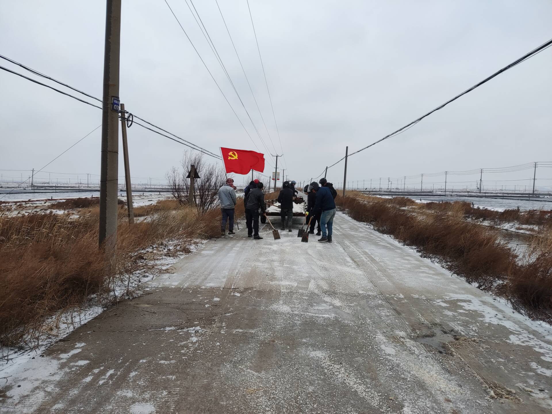 為了確保職工的安全出行,埒南制鹽分公司黨支部的全體黨員帶著鐵鍬、融雪劑,早早地來到現(xiàn)場,開始了緊張而有序的除冰工作。他們不畏嚴寒,奮力鏟除路面的冰雪,讓道路重新變得暢通無阻,確保職工上下班“路路暢通”。(王石)