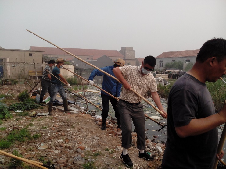 大家早上7點(diǎn)集合后到所在負(fù)責(zé)片區(qū):化工區(qū)家屬區(qū)北面的河邊,用耙子打撈河中垃圾。大家不顧高溫天氣、垃圾長(zhǎng)期在河中腐蝕的異味,用大耙撈,小耙拉,將河中的垃圾運(yùn)上來。河中懸浮生長(zhǎng)的雜草最難清理,大家齊心協(xié)力,用木筏撐著,找繩子拉,經(jīng)過一上午的忙碌,垃圾被清理了,河道暢通了,為居民創(chuàng)造了整潔的環(huán)境,更為雨季到來時(shí)河道的排淡能力發(fā)揮了較大的作用。