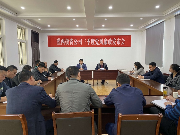 為進一步加強黨風廉政建設,推進企務公開制度的落地生根,切實發(fā)揮黨員干部和職工群眾對廉潔風險的監(jiān)督作用。10月22日,灌西投資公司劃分兩大片區(qū)對三季度黨風廉政建設情況進行發(fā)布,各單位支部書記、專兼職紀檢員及部分職工代表參加會議。
