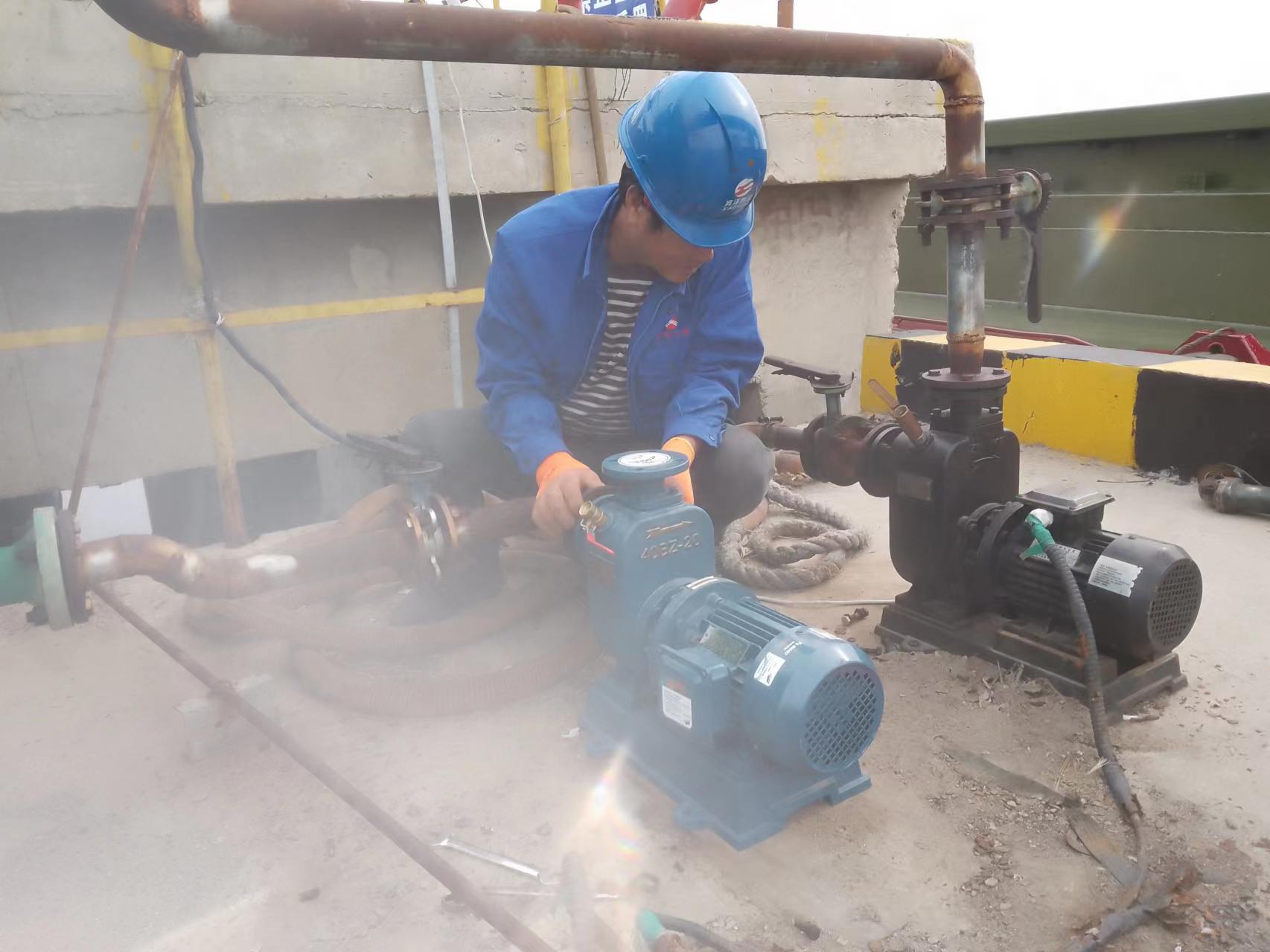 公司目前有兩臺船只生活用水污水泵,其中一臺由于停放時間轉(zhuǎn)長、銹蝕嚴重、泵體開裂,導致無法使用,為了設備正常運行,公司投資2000余元,購買一臺污水收集泵、鋼膠塑管進行重新安裝,對各種閥門及時加油潤滑。電工對電氣配電柜也進行重新調(diào)試和修復,竭盡全力為船工提供更完善的服務,滿足船只污水排放需求。目前正在試行,為內(nèi)河碼頭的生態(tài)環(huán)境起到積極的推進作用(胡秀同)