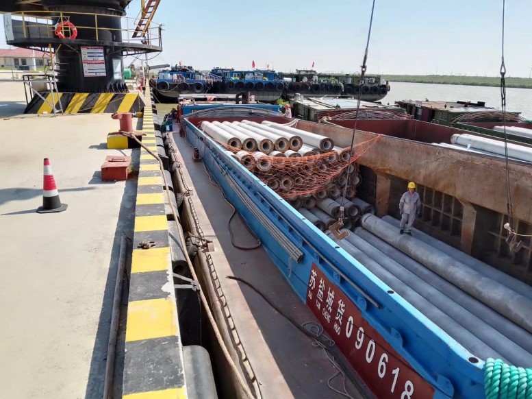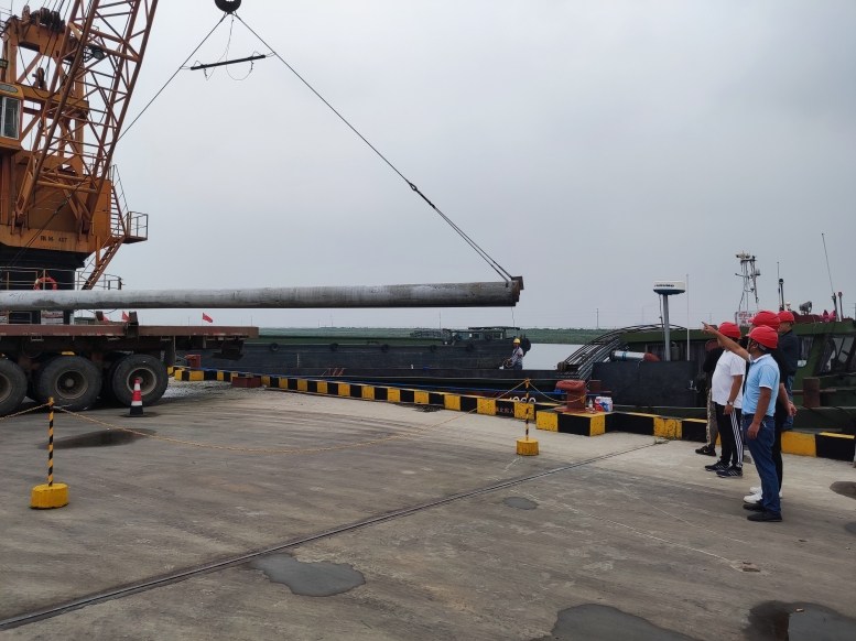 管樁的裝卸和別的貨物相比,安全風(fēng)險更大,所以在裝卸管樁時,宵洋管理人員要深入現(xiàn)場,緊盯嚴(yán)管,對管樁的重要環(huán)節(jié),一邊講解注意事項,一邊手勢指揮,塔吊師傅小心翼翼,嫻熟地拔弄著操作手把,通過塔吊搬運,五噸的管樁在半空中調(diào)試到最佳位置,最后平穩(wěn)著落,從船艙吊起的管樁,運送到貨車上,艙內(nèi)的三名工人,齊心協(xié)力,配合得相當(dāng)默契,掛在吊機(jī)上的管樁,看似簡單的一鉤一掛,不僅要調(diào)整管樁擺放角度,還要檢查鋼繩是否牢固,為了安全起見,在船艙和管樁之間,又架起了一層防護(hù)網(wǎng),防止掛鉤工摔倒跌落,采取一系列防范措施,確保萬無一失。經(jīng)過一天的忙碌,望著遠(yuǎn)去車輛,每當(dāng)圓滿完成當(dāng)天卸管樁任務(wù)后,工人們憨厚老實臉上,露出了滿意的微笑,這就是我們宵洋工人搬卸管樁情景的真實寫照!(宵洋物流公司胡秀同)